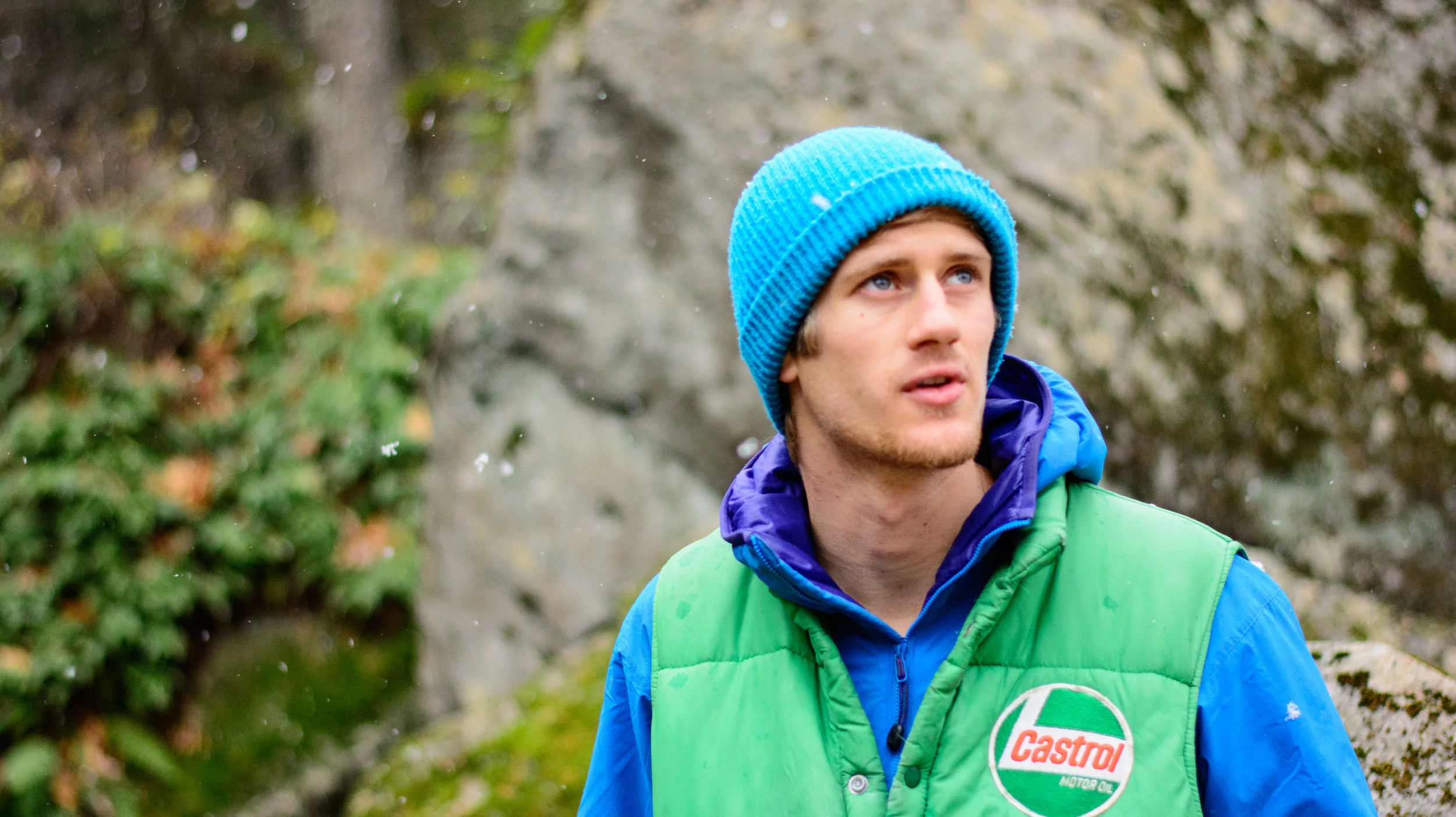 Caleb ski raced in high school, but despite being one of the best on the team, he preferred the backcountry, where he could make his own decisions on where to turn. He played Ultimate Frisbee and in 2010 was named Vermont Ultimate Frisbee Player of the Year. In high school he also found rock climbing, in the gym at first and then at local crags.