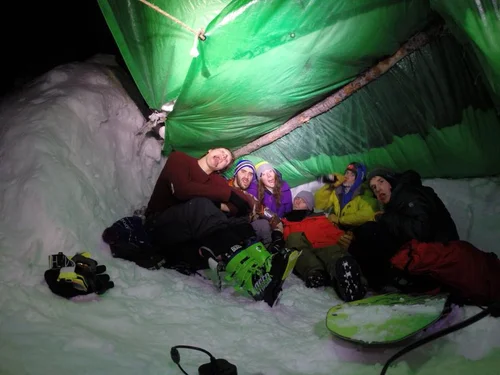 The rises and falls in our lines would surely map both our successful adventures and the sufferfests. Those of us who have been lucky enough to tie into a rope with Caleb or join him on the skin track know what I’m talking about. For others, I must introduce a key term here: Sandbag (verb): to intentionally understate an activity’s difficulty. Sandbagger (noun): A person who intentionally belies or understates an activity’s difficulty through statements like “It’s easy; It’s not that bad; You will love it.”